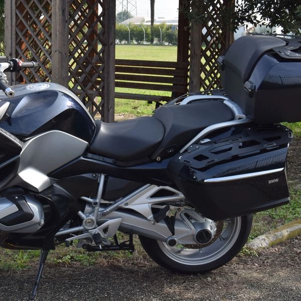 In addition to the color matched 49l topcase, factory equipment includes color matched saddlebags, heated seat, cruise control.